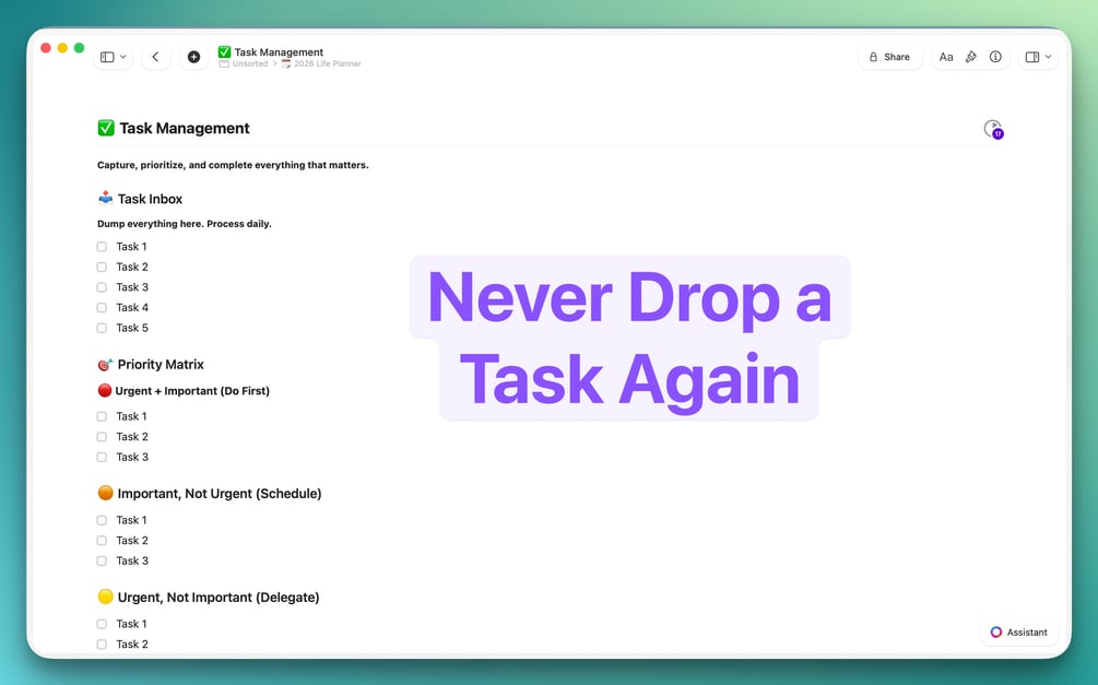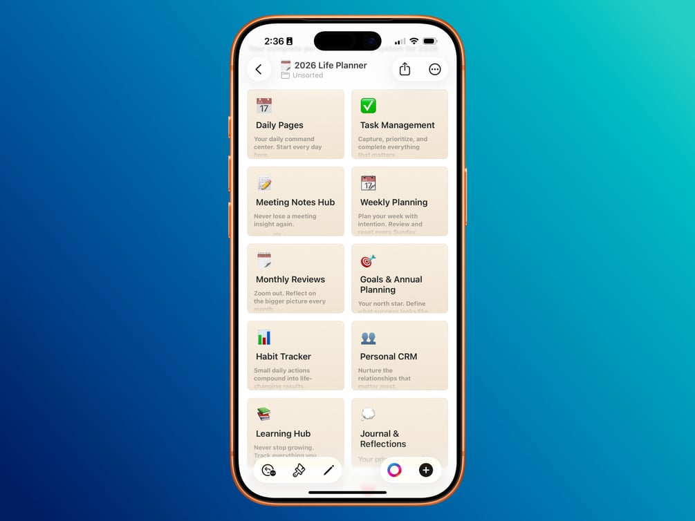 Stop jumping between 10 different apps. The 2026 Apple Life Planner puts everything in one beautiful, interconnected Craft workspace.